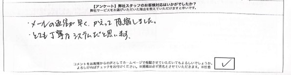 メールの返信が早く、かえって恐縮しました。 とても丁寧なシステムだと思います。