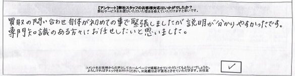 連絡も早く、親切に対応していただけました。荷造り資料送付対応はとても良い対応です。