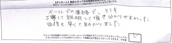 メールでの問合わせからの回答も早く、安心して発送まで行うことができました。
